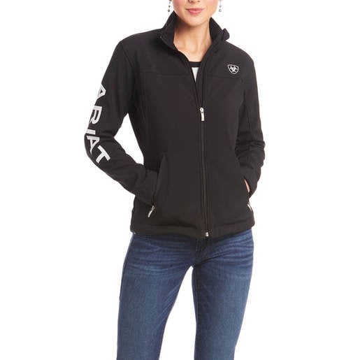 Ariat Women's New Team Softshell Casual Jacket - Team work makes the dream work, as they say, and this jacket's winning combination of lightweight warmth and Ariat branding is hard to beat. Softshell stretch nylon with microfleece backing for...