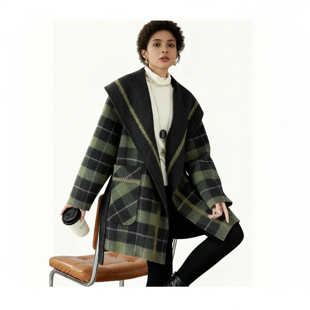 Women's Korean Reversible Double-faced Cashmere Coat | New Retro Plaid, Elegant Loose Slimming Woolen Outerwear