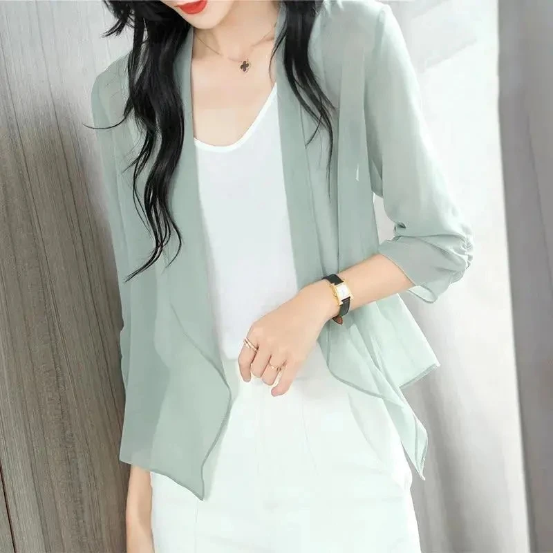 Chiffon Shawl Women Coat 2025 mmer Fashion Thin Loose Cardigan Top Ladies Wild Short Female Sun Protection Clothing Jacket