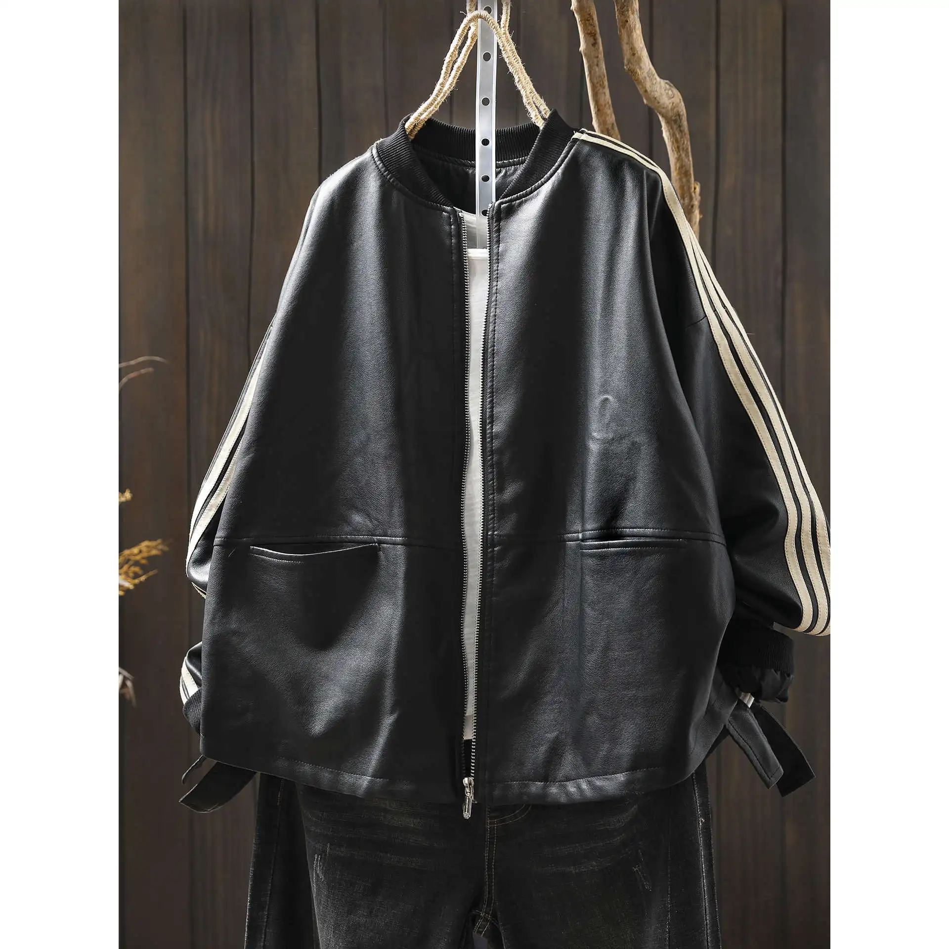 2025 New Women's PU Leather Jaet Long Sve Loose Fit Cool Motorcycle Sle Outerwear Faionable Autumn Collection