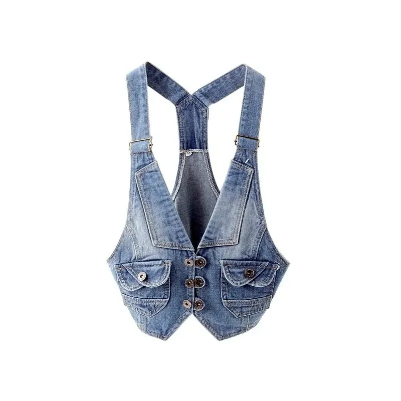 2025 Summer Vintage Sling Denim Vest Women Waistcoat Casual Cowboy Sleeveless Jacket Korean Slim Short Jeans Vests Coat  Read more