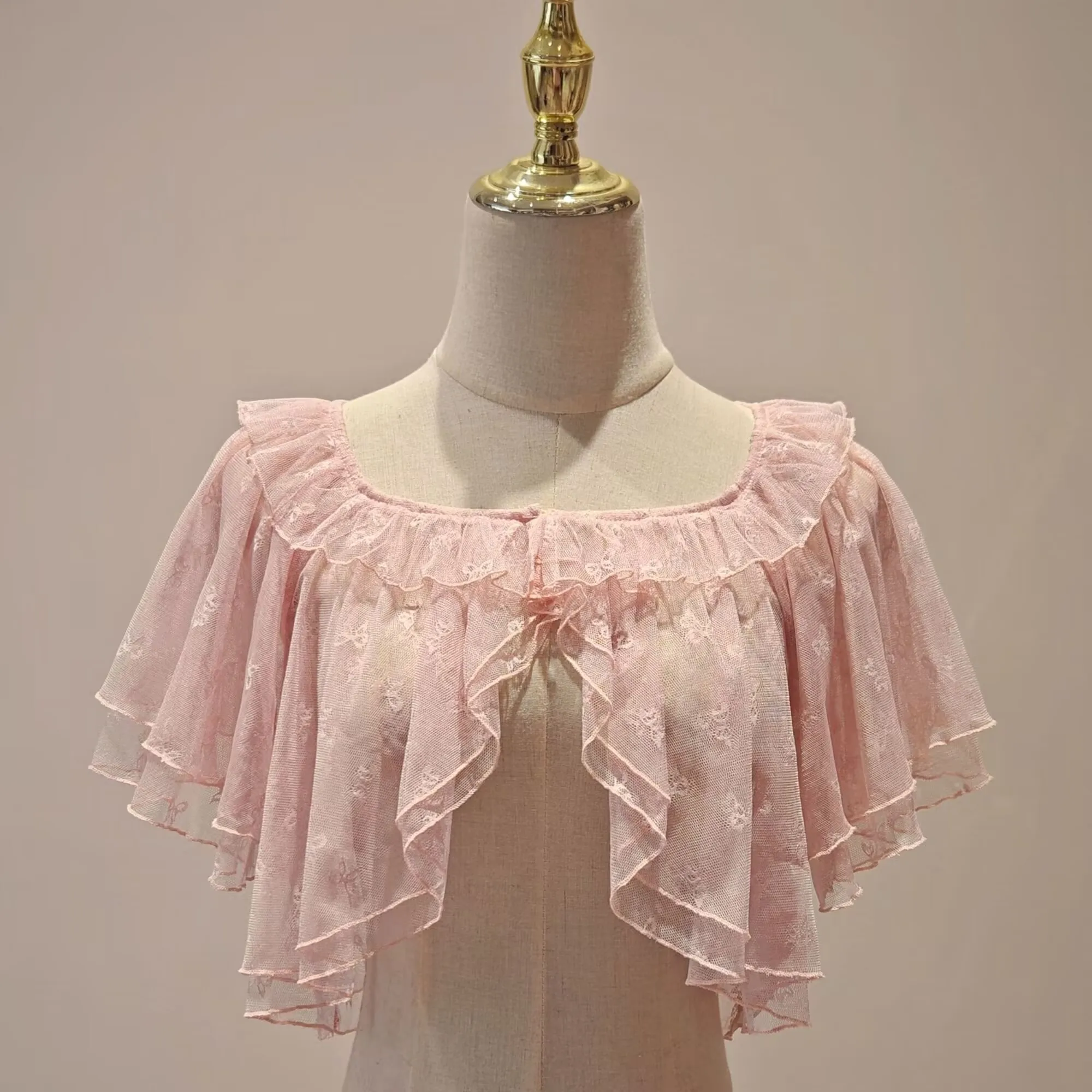 Summer Lolita Short Wraps Coat Women Sweet Kawaii Lace Mesh Open Front Poncho Gothic Girls Retro Cute Princess Capes Wraps