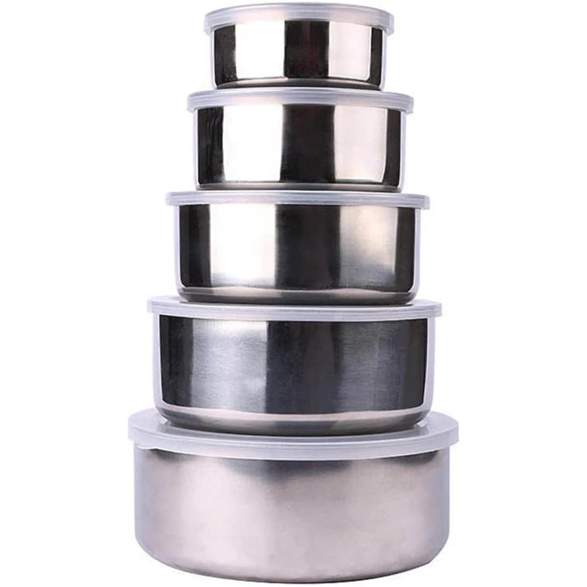5Pcs Silver Stainless Steel Mixing Bowls with Lids Stackable and Storage Deep Nesting Bowls Dishwasher Safe for Kitchen Baking