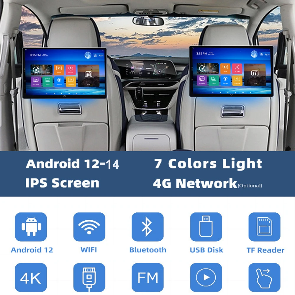 2025 Car Headrest Monitor Tablet PC 13.3" IPS UHD 4K 1080P Video Android 13 WIFI Bluetooth USB HDMI Airplay RAM 2G+32GB ROM