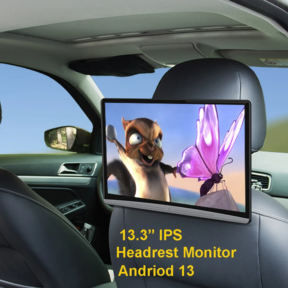 13.3" IPS Car Headrest Monitor Android 13 System 1080P Video player Monitor Wifi HDMI Rear Seat Entertainment 2G RAM+32GB ROM