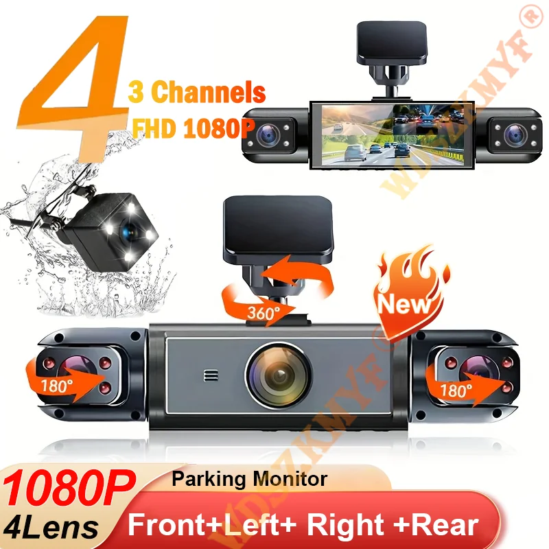1080P Video Recorder Car 3/4 Channels 360° Dash Cam Car DVR Parking Monitor Front Right With Rear View Night Vision Black Box