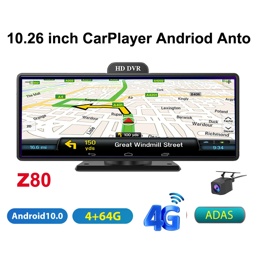10.26 Inch Car GPS DVR Wireless Carplay & Android 4G+64G ADAS 5G WiFi BT 24h Park Monitor Rearview Mirror Camera Video Recorder