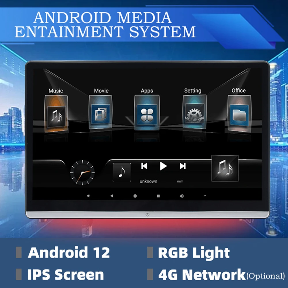 13.3 Inch IPS 4K Car Headrest Monitor Android 13 Tablet PC 1080P WIFI/Bluetooth/USB/SD/HDMI/FM/Mirror Link/Miracas MP5 Player
