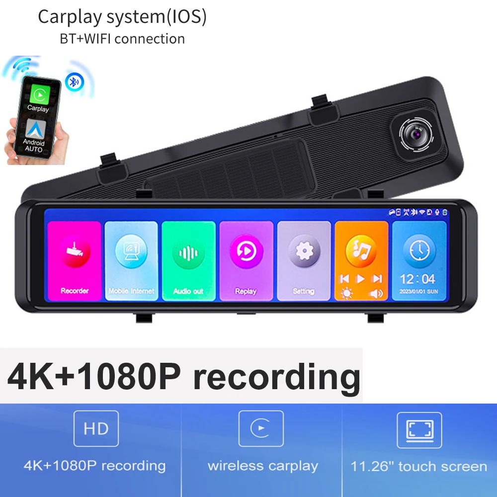 11.26" Car Rearview Mirror 5G Video Android CarPlyaer 4K DVR Dash Cam Recorder 1080P GPS Blutooth WiFi 24h Parking Monitor