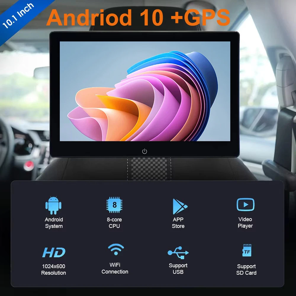 10.1 inch 4K Car Headrest Monitor Tablet PC Android 10 GPS 1080P WIFI/Bluetooth/USB/HDMI/Airplay MP5 APP 2G+32GB ROM Car Monitor