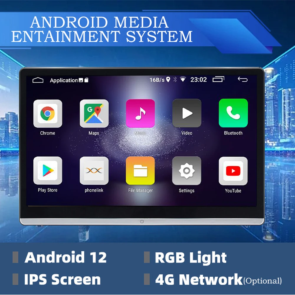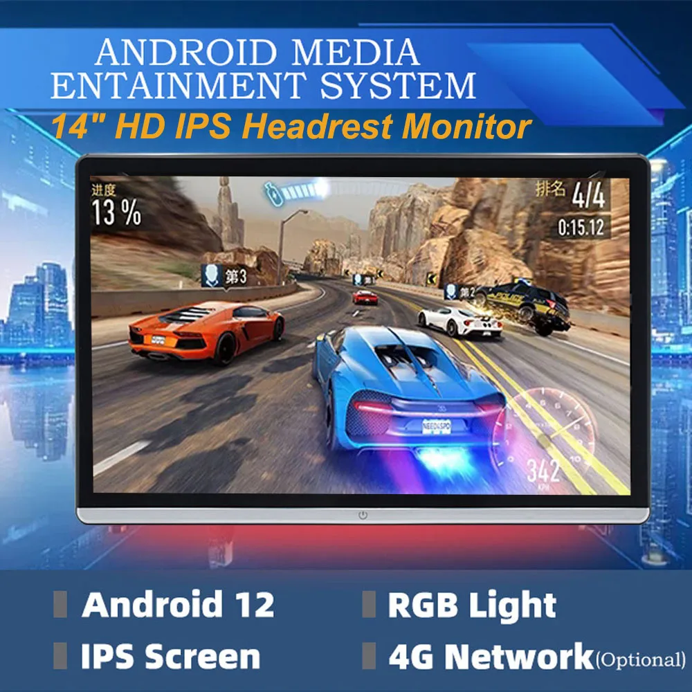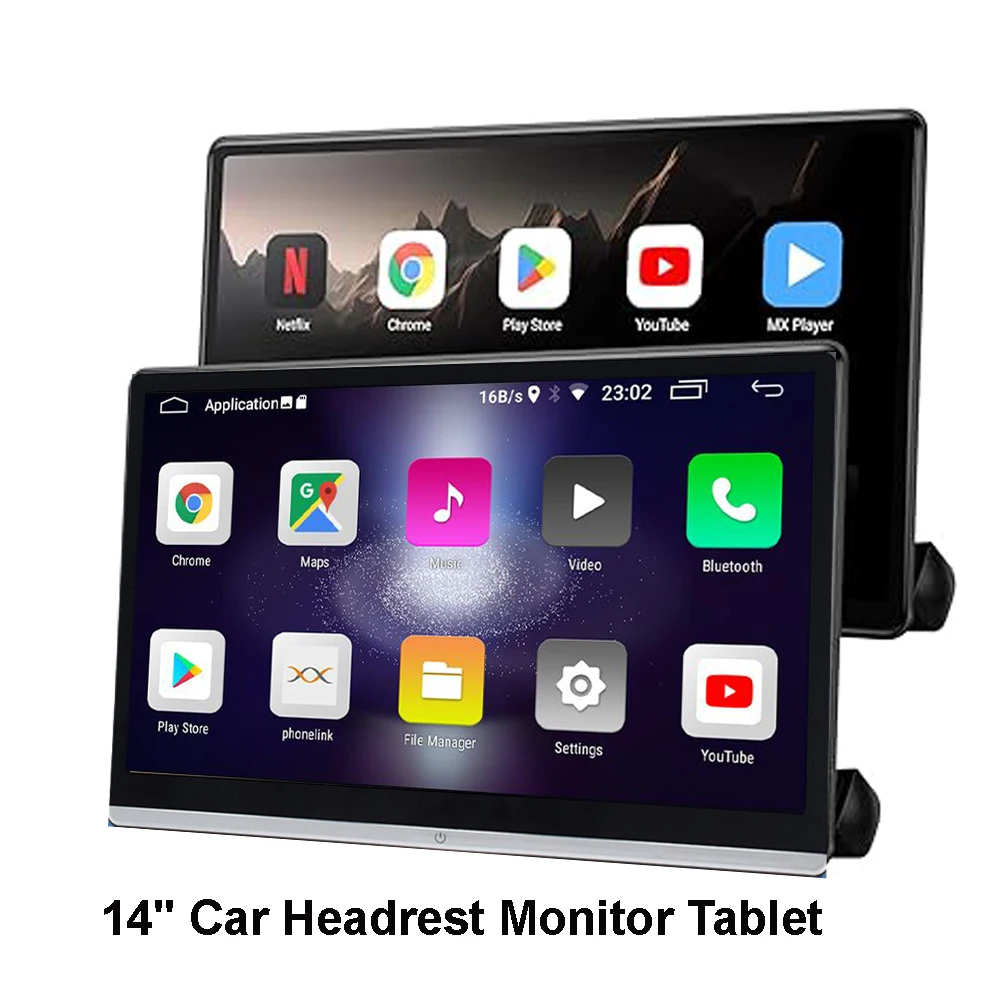 14" IPS Car Headrest MonitorTablet PC Android 12 UHD 4K 1080P WIFI/Bluetooth/HDMI/Mirror Link/Miracas APP Video Player 2G+32GB