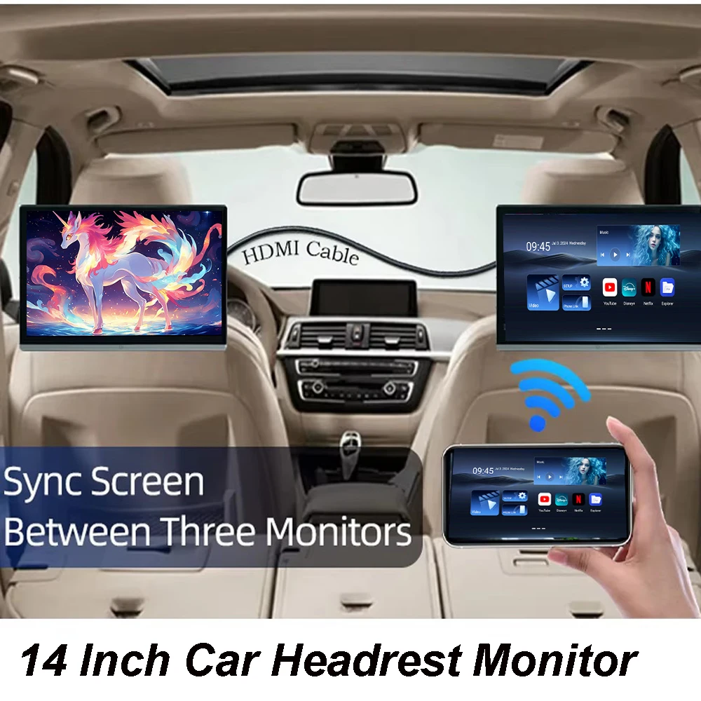 14" IPS 4K Car Headrest Monitor HDMI OUT Car Rear Multimedia TV Android 12 Multifunction Tablet PC HDMI IN Airplay 2G+32GB ROM