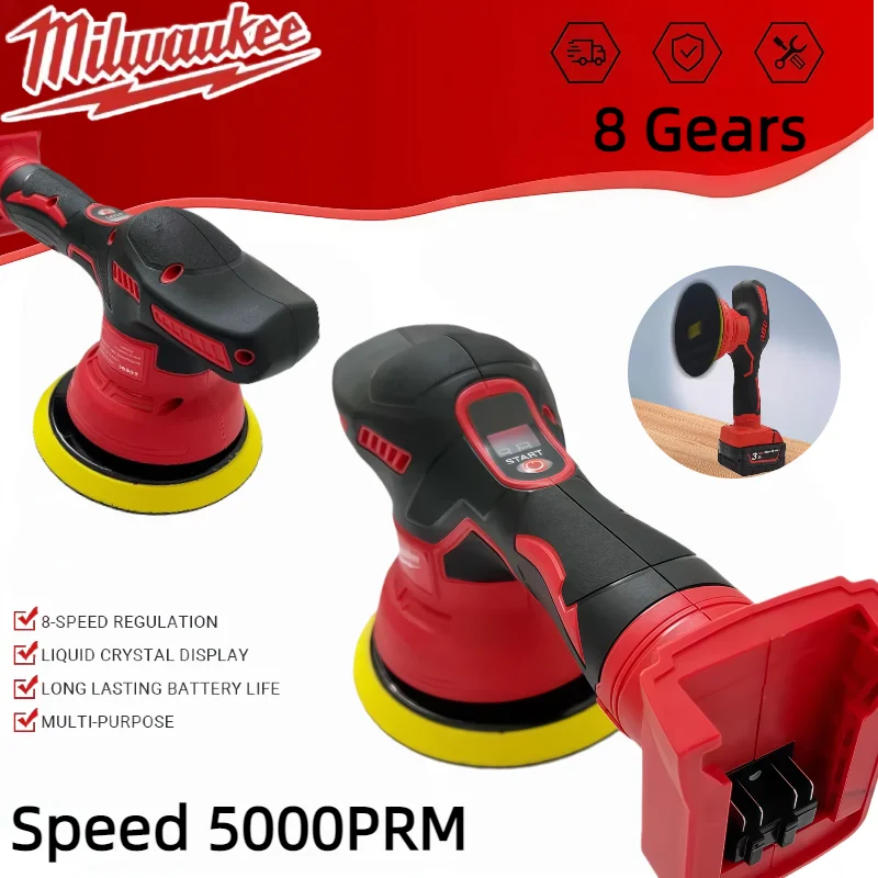 Milwaukee 8-Speed ​​Digital Display Long Battery Life Cordless Polisher Electric Auto Car Waxing Polishing Machine Power Tool