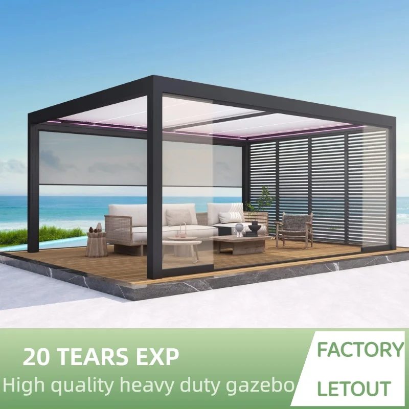 Freestanding Louvered Pergola with 6063T6 Heavy Duty Frame and Full Glass Enclosure for Year-Round Outdoor Use