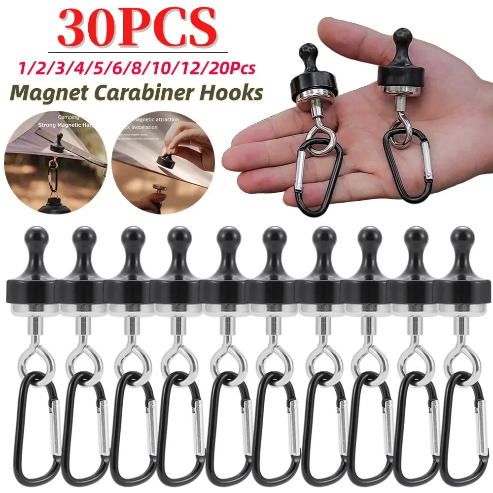 1-30Pcs Camping Magnetic Hooks Heavy Duty Separable Outdoor Tent Canopy Carabiner Clip Magnet Hanger Camping Tools Accessories