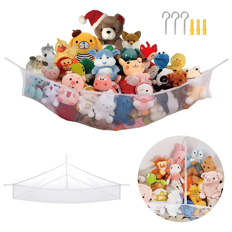 1PC Large Toy Hammock Mesh Net Stuffed Animal Net Hammock Corner Toy Organizer for Plushies Hanging Holder Bedroom Nursery