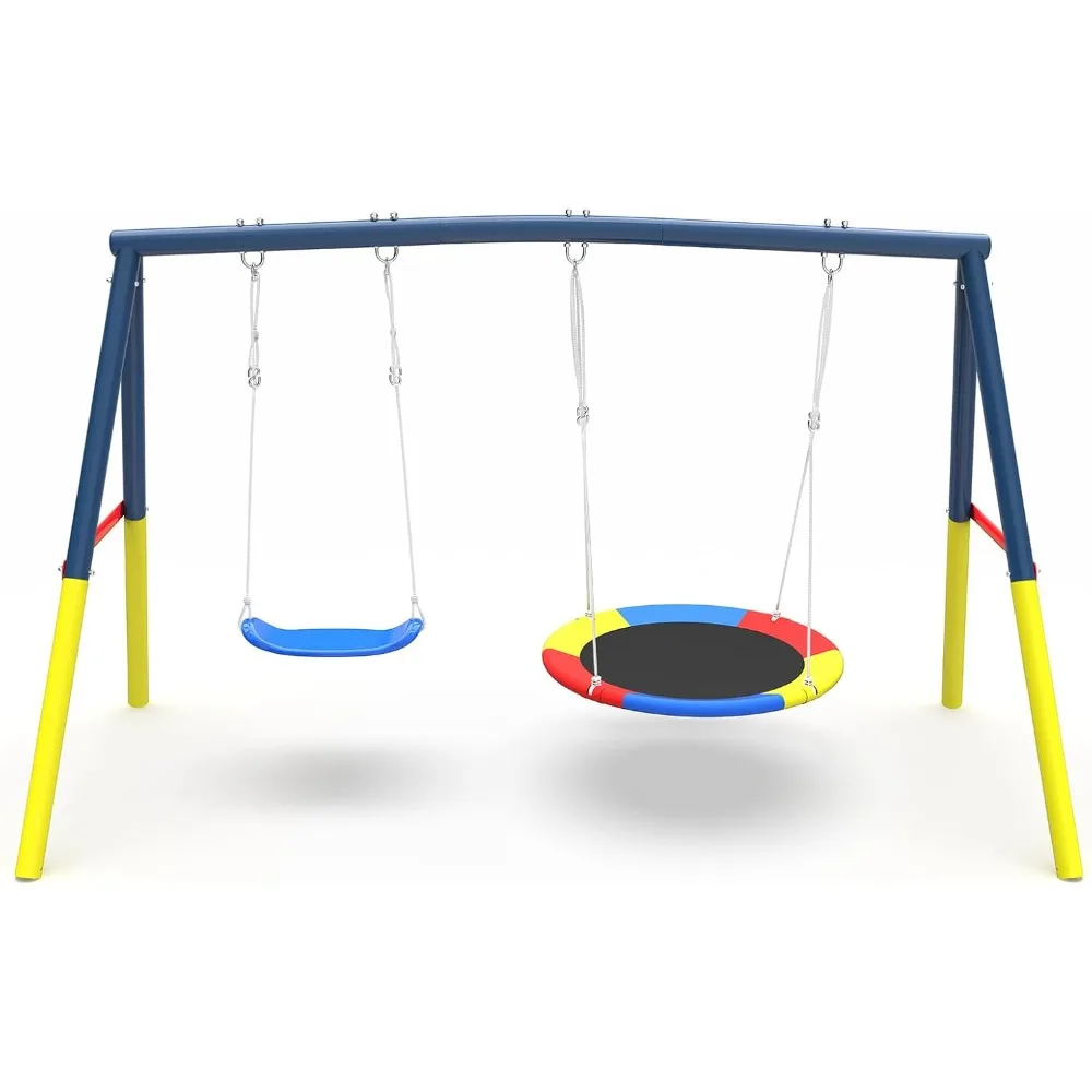Swing Set for Backyard with Stand, Swing Heavy Duty 440lbs Metal Outdoor Swing Stand, Contain 1 Saucer 32" & 1 Belt seat 26.2"