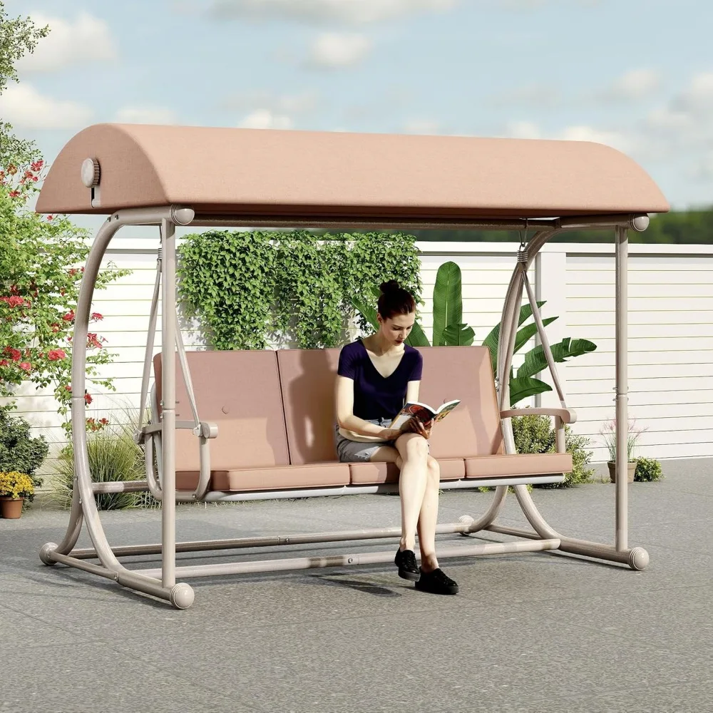 Modern Porch Swing with Stand, 3 Person Outdoor Patio Swings with Canopy, All Weather Backyard Swing for Adults, 2 in 1 Patio