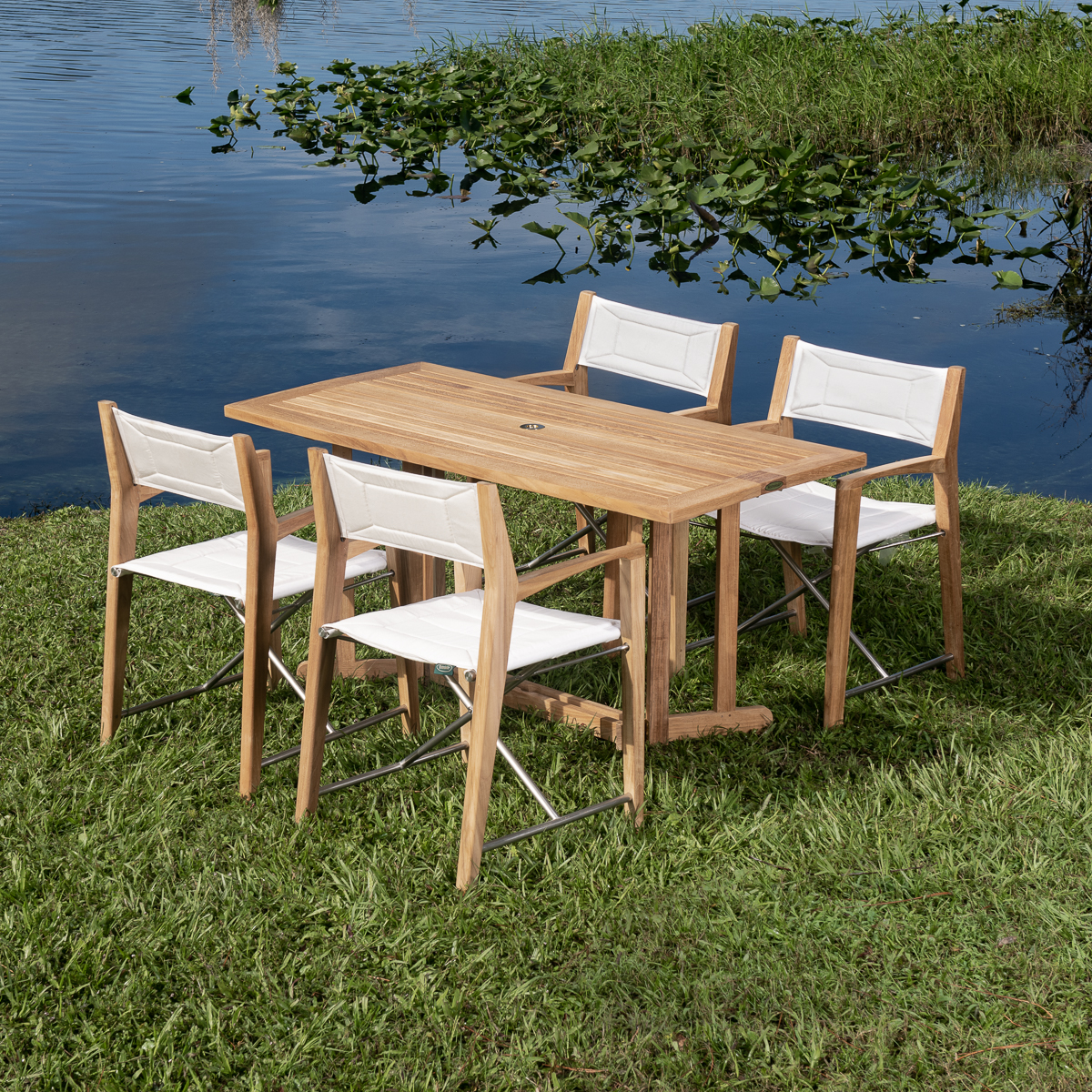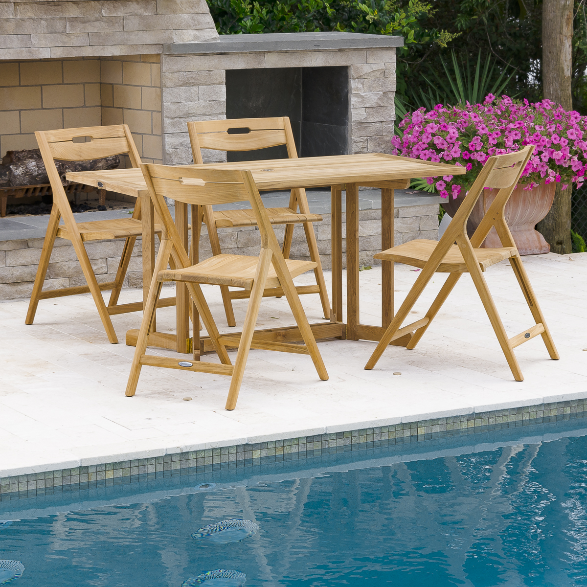 "Features 1 Barbuda Folding Table and 4 Surf Folding Chairs. All pieces fold for convenient storage and transportation. Built with Grade A Teak harvested from renewable plantations in Indonesia."  Read more