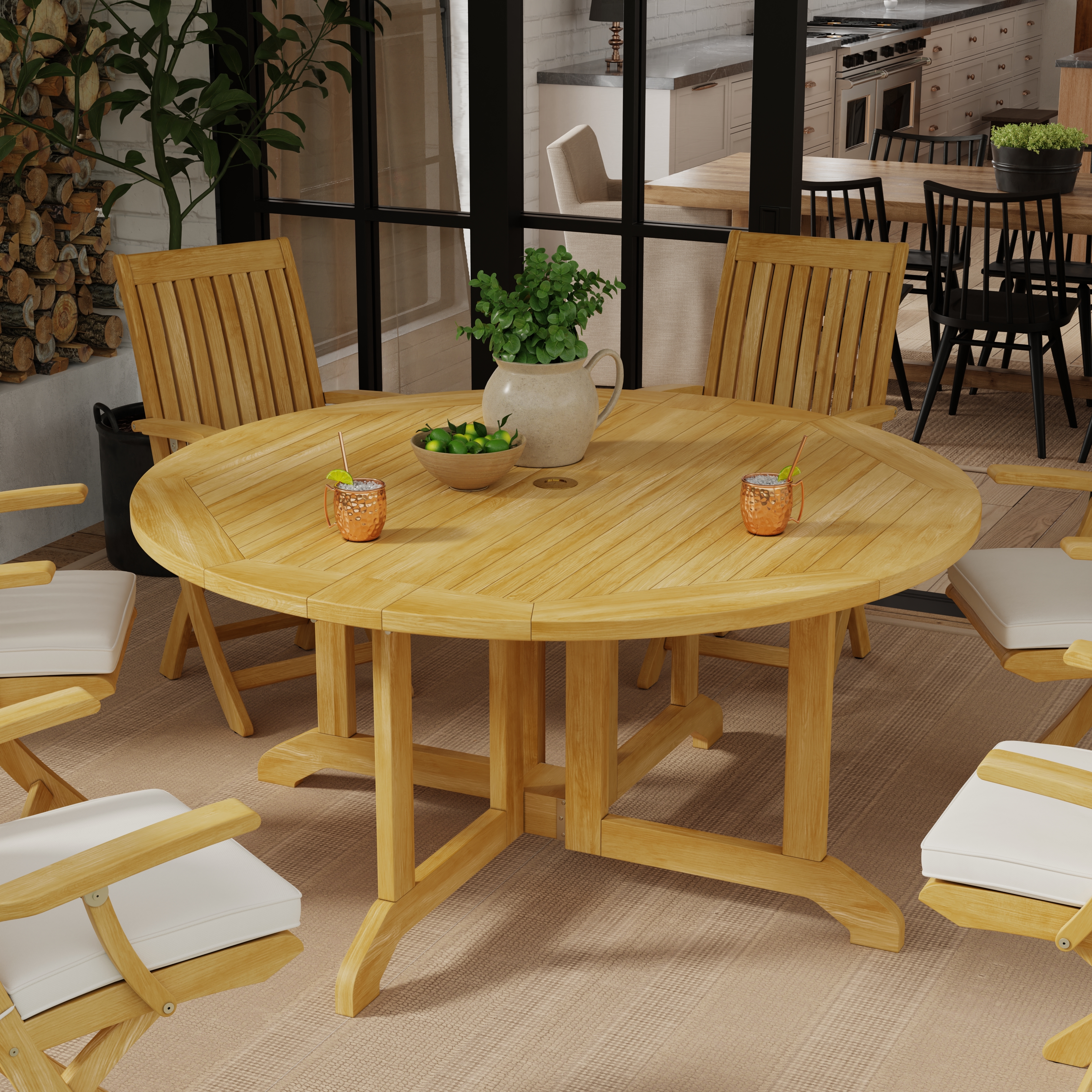 "60 inch Round Barbuda teak folding table for patios and yachts. Preferred for small apartments & balconies where space is limited. Seat up to 6 comfortably around this compact teak folding table."  Read more