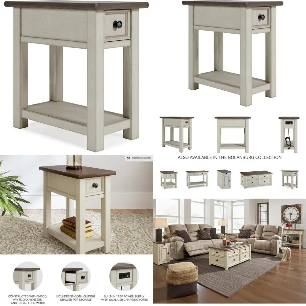 Ashley Bolanburg Inspired Farmhouse Style Chair Side Table in Light Brown and Whitewash Finish