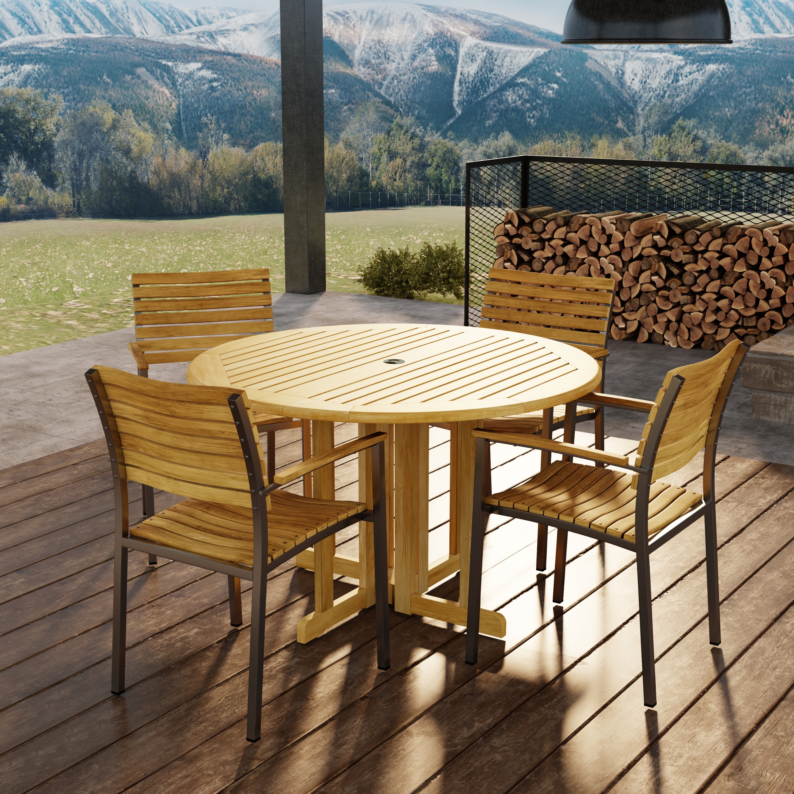 Round Sussex 5 piece Teak Patio Dining Set