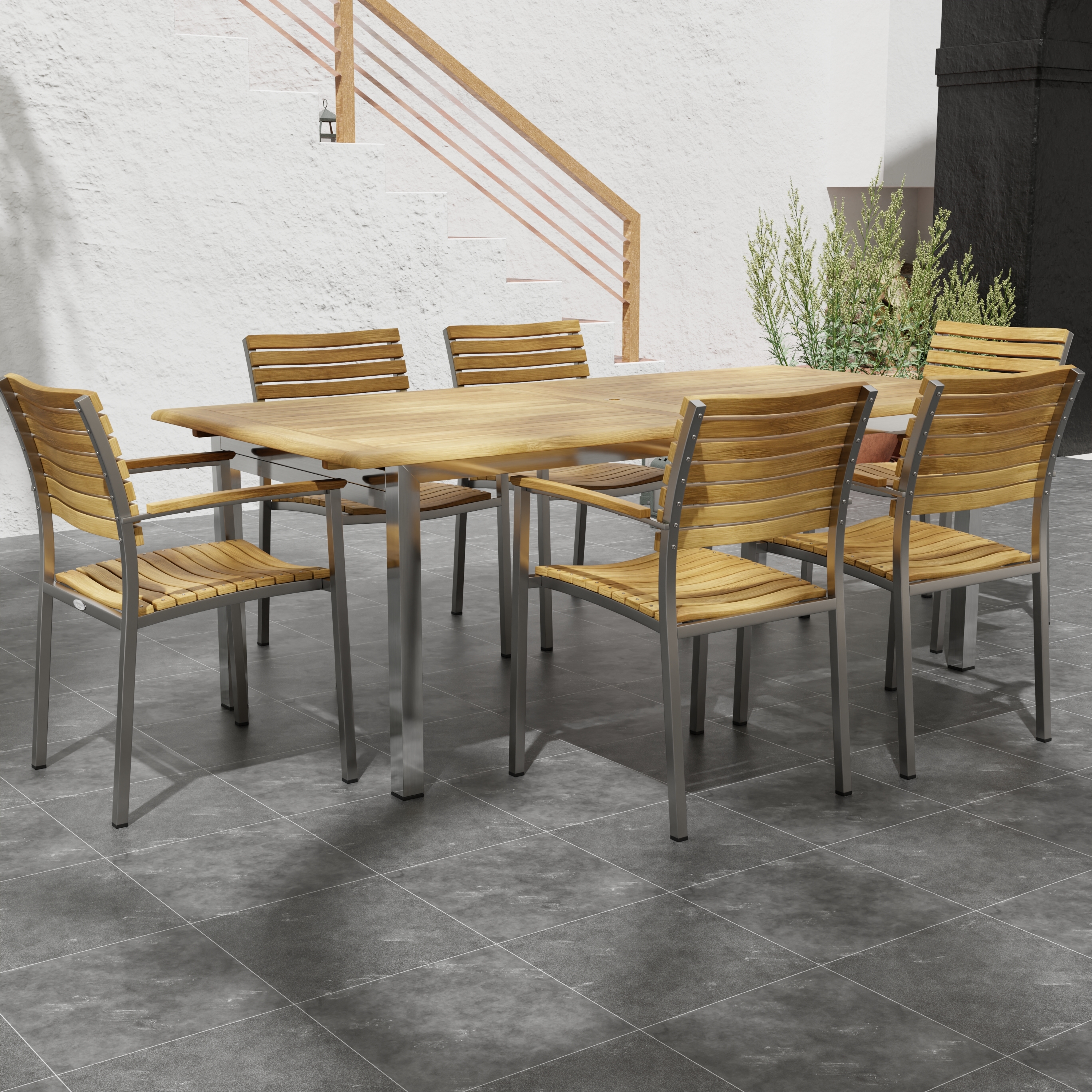7 pc Vogue Outdoor Dining Set with Extendable Table and Stacking Armchairs