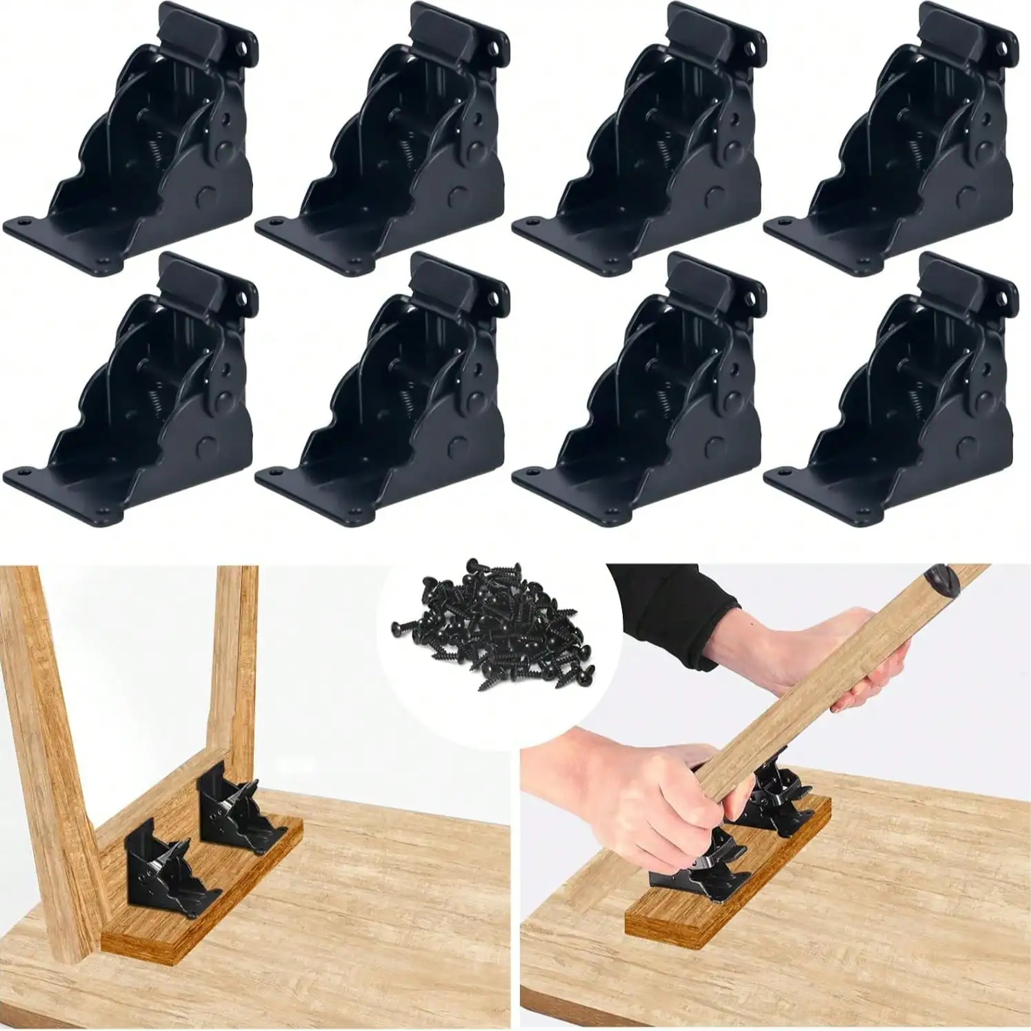 8 Pack 90 Degrees Folding Table Legs Brackets, Lock Extension Support Bracket Heavy Duty Folding Brackets, Foldable Self-Lock Hi