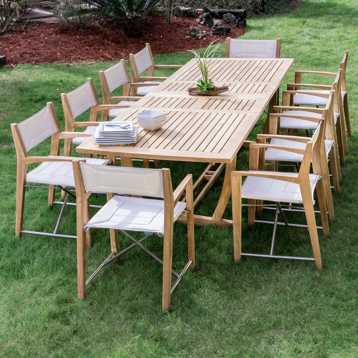 "Includes 10 Odyssey Folding Chairs and 1 Grand Veranda Extension Table. Chairs fold completely for storage while the Veranda Table can be extended to seat 6-12. Crafted with 100% Grade A Teak harvested from sustainable plantations in Indonesia."  Read more