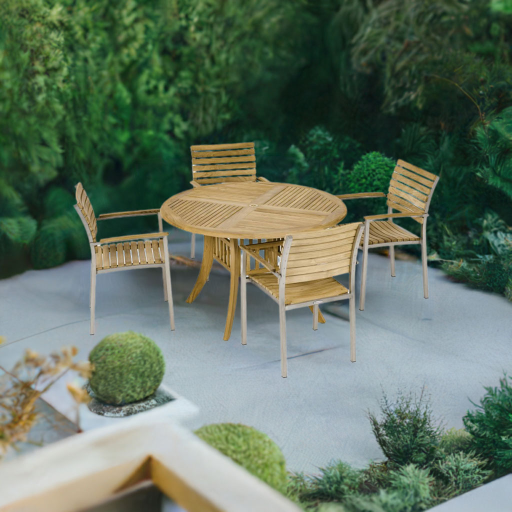 Surf 5pc Teak Round Table & Chair Set