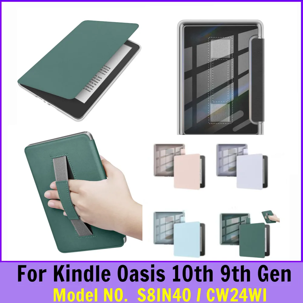 HandStrap Acrylic Back Case for Kindle Oasis 10th 9th Gen Case PU Leather with Clear Back Cover S8IN4O CW24WI Ebook 7'' Funda