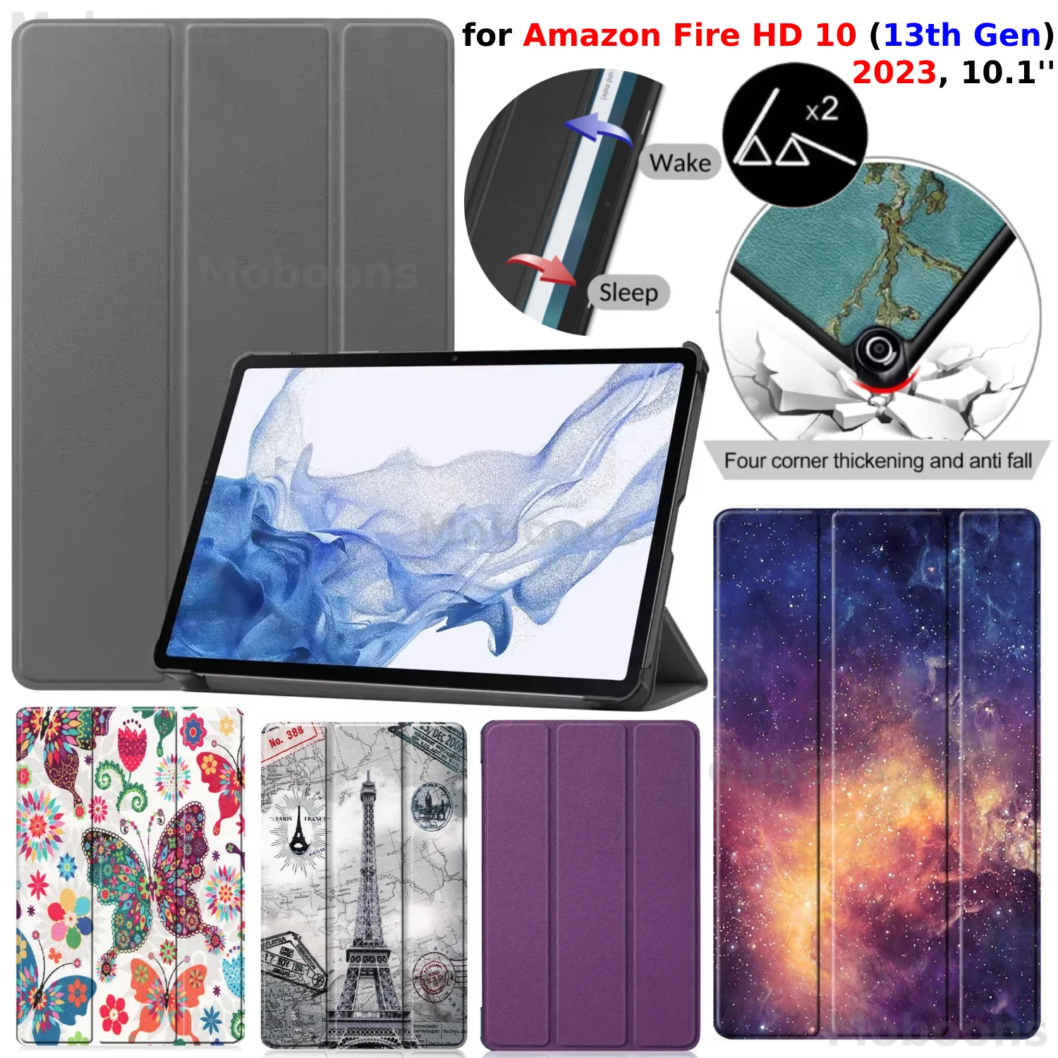 For Amazon Fire HD 10 Case 2023 13th Gen 10.1'' Tri-Fold PU Leather Stand Cover Sleep/Wake Shockproof Kindle Fire Tablet Funda