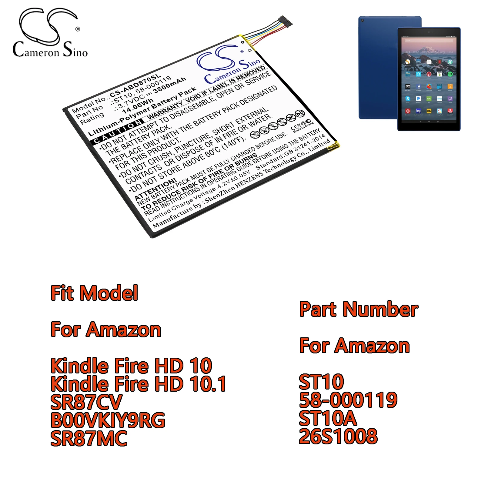 Cameron Sino 3800mAh Tablet Battery For Amazon Kindle Fire HD 10 Kindle Fire HD 10.1 SR87CV B00VKIY9RG SR87MC