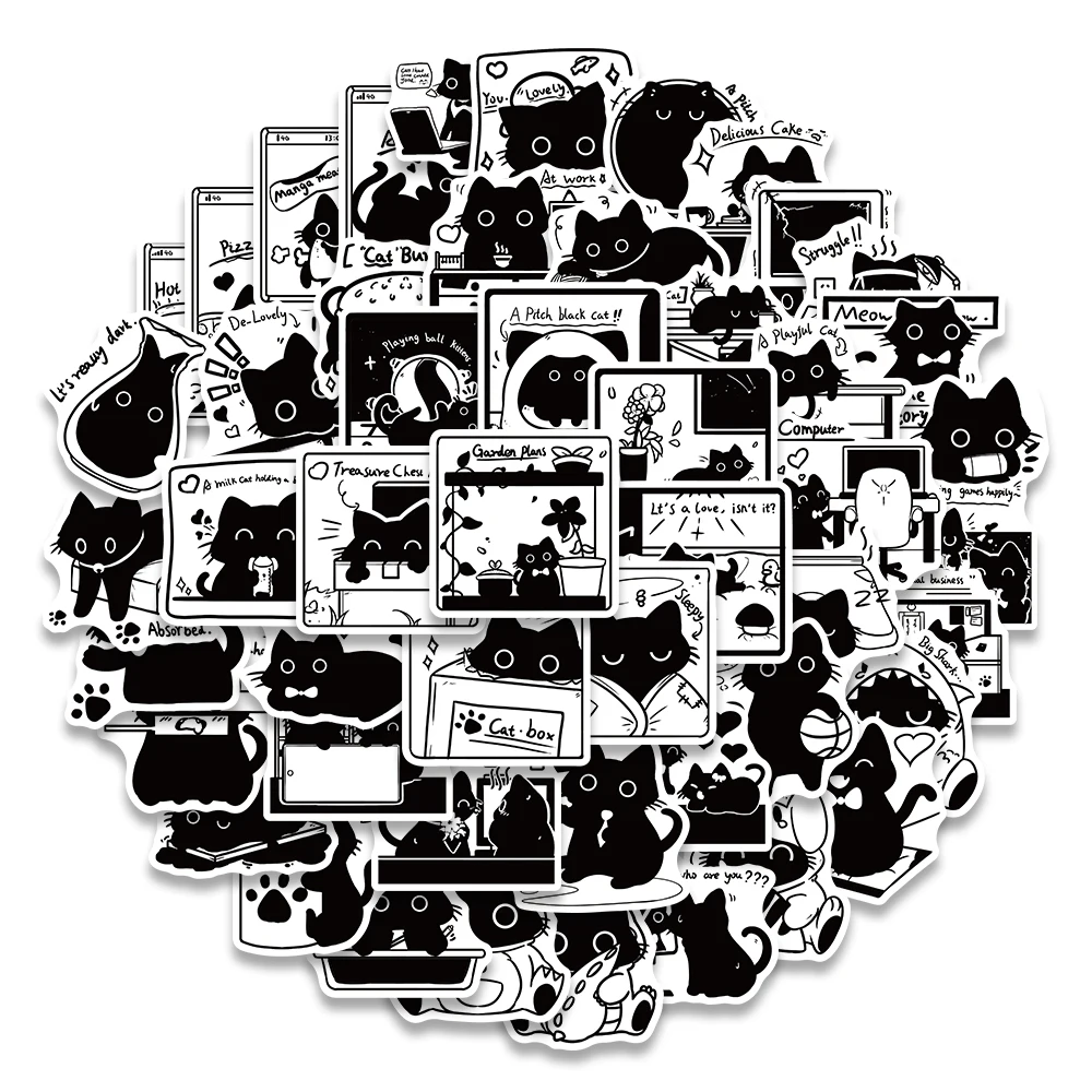 50PCS Little Black Life Diary Stickers Cute Cat Handbag Material Phone Case Laptop Water Cup Luggage Waterproof Stickers