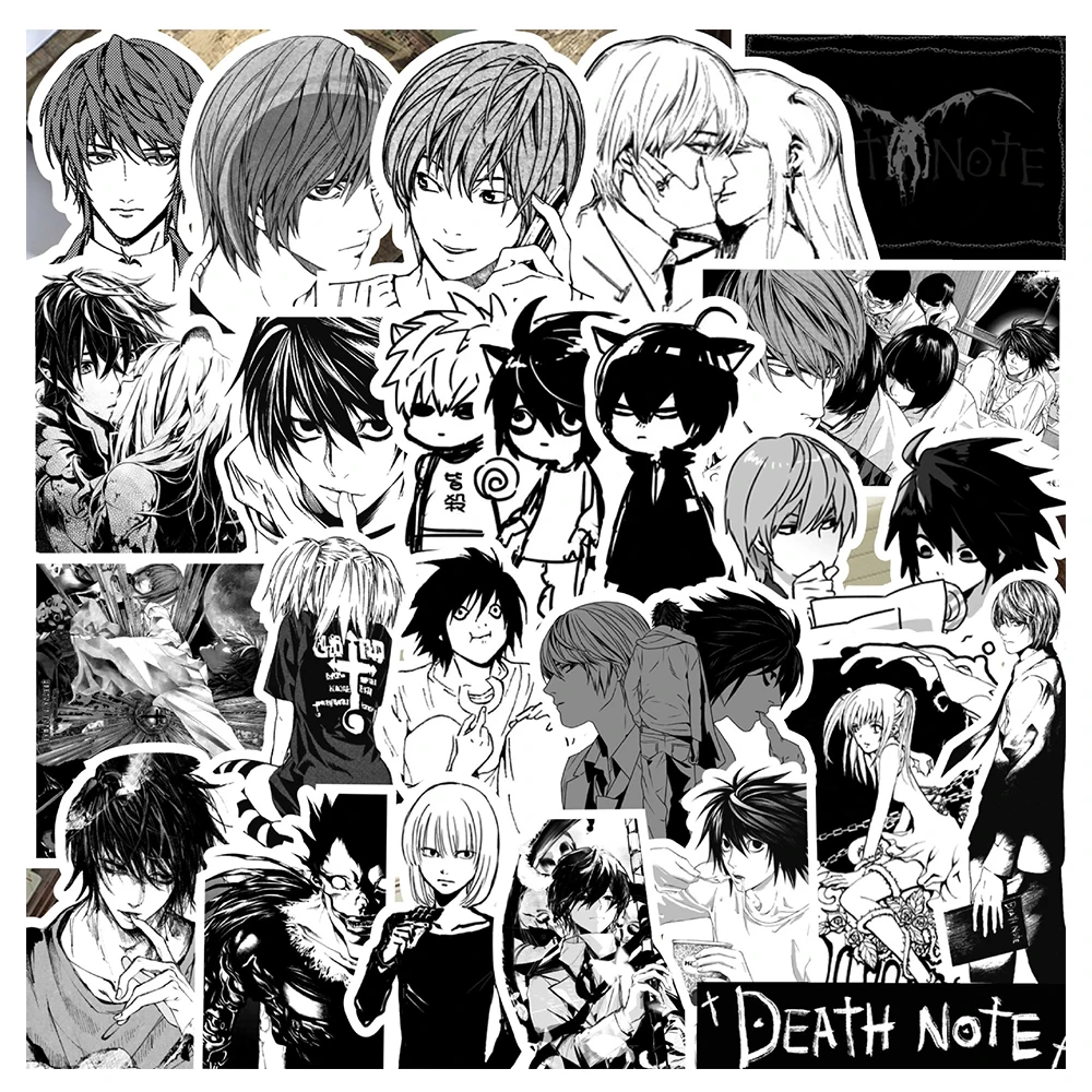 10/30/72pcs Black White Anime Stickers Cool Death Note Yagami Light Decals DIY Laptop Suitcase Notebook Japan Manga Sticker Pack