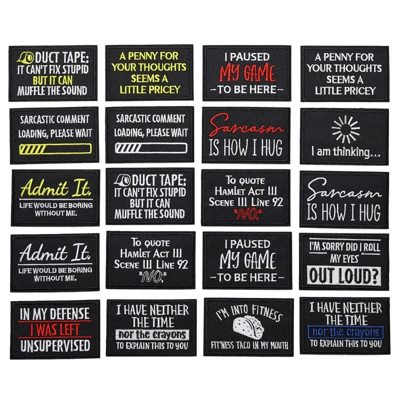English Letters Black White Rectangle Iron-on Sew Embroidery Badge Patches DIY T-shirt Hat Backpack Clothing Appliques Sticker