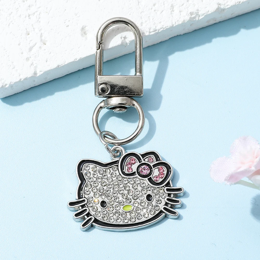 Hello Kitty Keychain Y2K Silver Color Rhinestone Metal Sanrio Keyring Fashion Bag Pendant Cute Girls Backpack Decoration  Read more