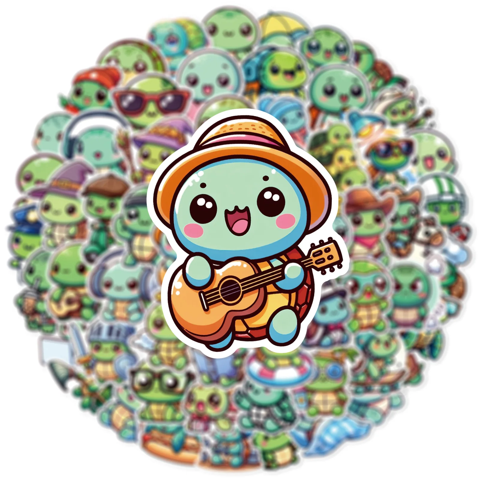60Pcs Cute Funny Green Turtle Cartoon Stickers Waterproof for DIY Scrapbooking Phone Laptop Guitar Suitcase Water Bottle
