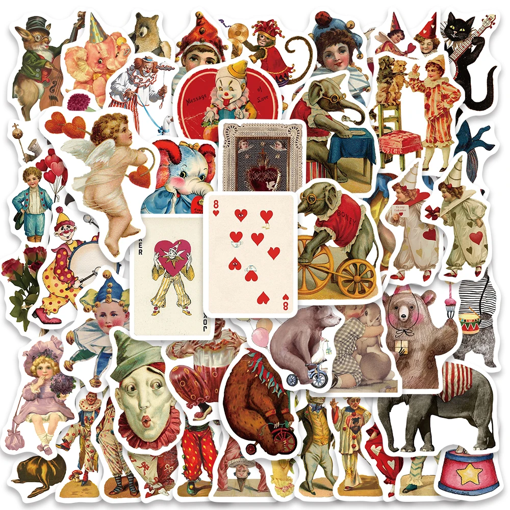 50PCS Vintage Circus Acrobatic Troupe Cartoon Stickers Decals Phone Laptop Guitar Bottle Luggage Book Children Gift Sticker  Read more