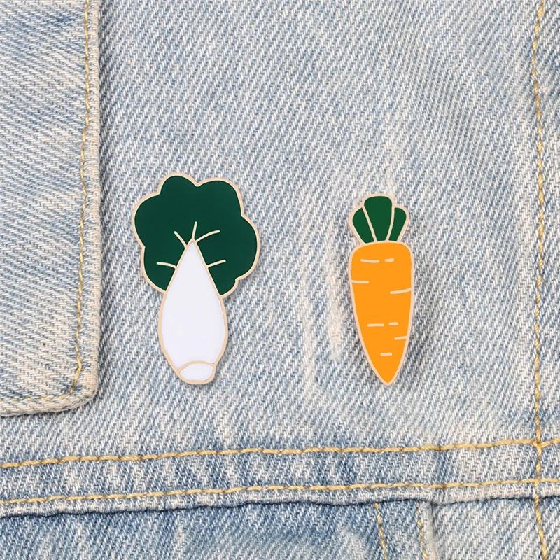 Cute Vegetable Enamel Pins Carrot Cabbage Brooches Cartoon Creative Metal Button Backpack Jean Shirt Badges Jewelry For Children