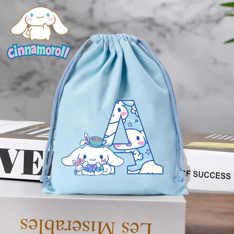 Sanrio Canvas Drawstring Bag Cute A-Z Print Cartoon Anime Holiday Party Candy Bags Cotton Kids Toys Gifts Jewelry Storage Pocket