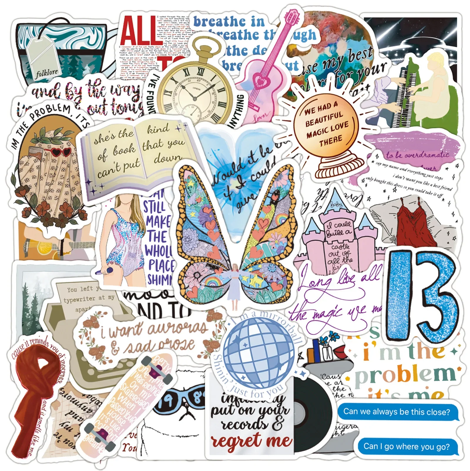 50Pcs Taylor Lyrics Graffiti Stickers Water Bottle Laptop Phone Bicycle Luggage Case Skateboard Children Adult Sticker
