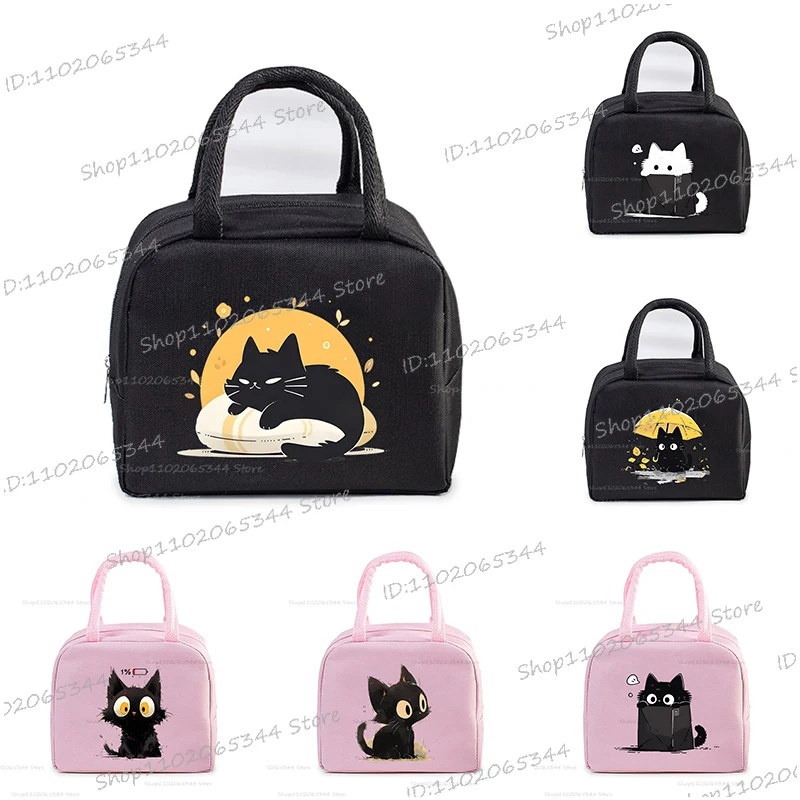 Anime Comic Cat Print Lunch Bag Women And Kids Funny Kitten Graphics Bento Thermal Handbags Thickened Insulation Lunch Box Bag