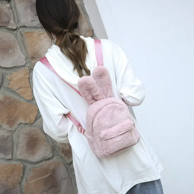 Rabbit Fur Bags For Women 2022 Fluffy Backpacks Winter Plush Mochila Fashion Furry Bagpack Y2K Rucksack Bunny Backpack Kids Pink