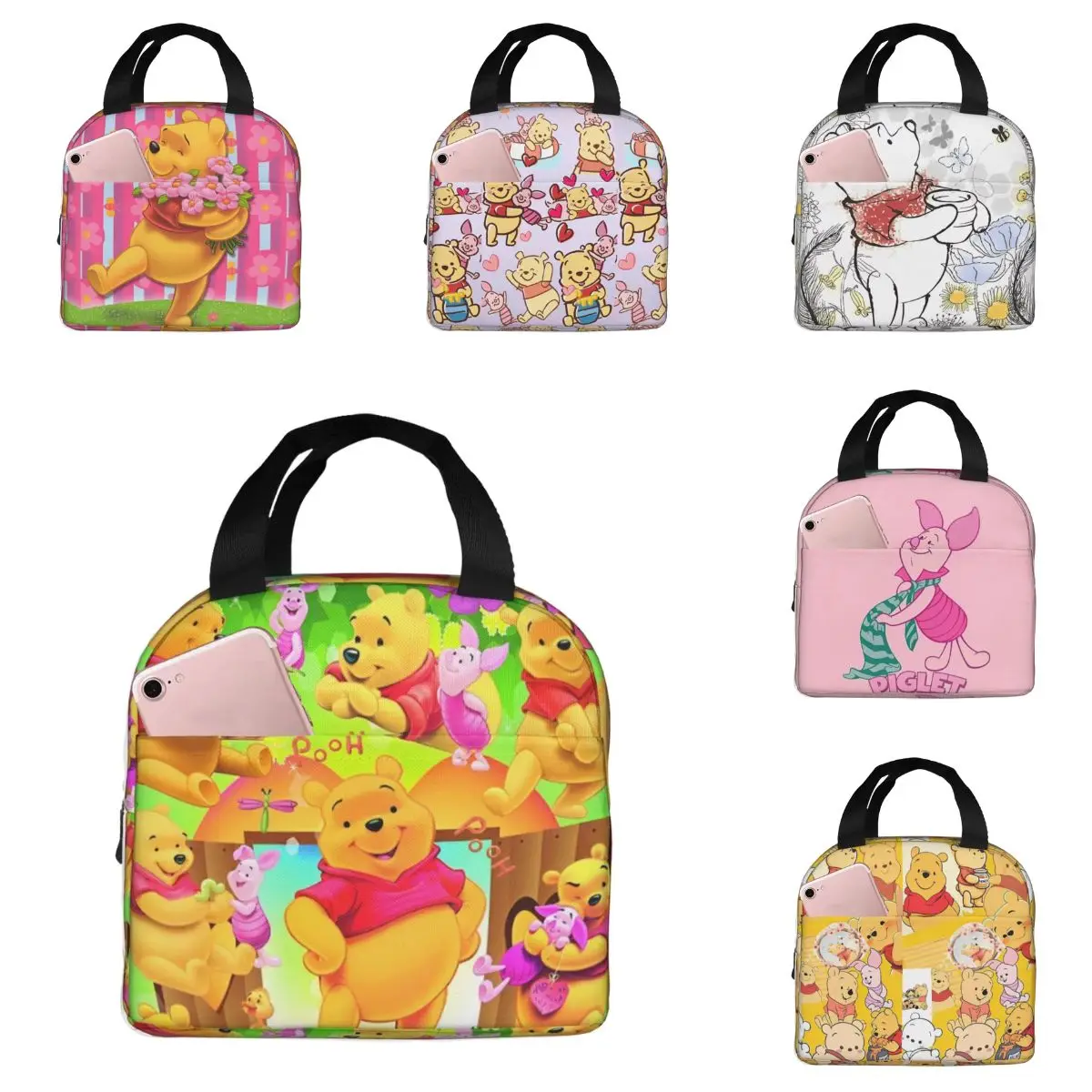 Piglet Pooh Bear Lunch Bag Casual Lunch Box For Girls Outdoor Picnic Convenient Cooler Bag Custom Thermal Tote Handbags