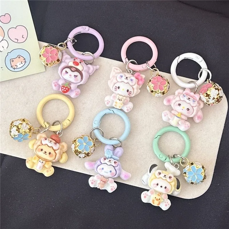 Sanrio Melody Hello Kitty Kuromi Cartoon Bell Keychain Backpack Cute Pendant Girl Accessories Best Friend Gift