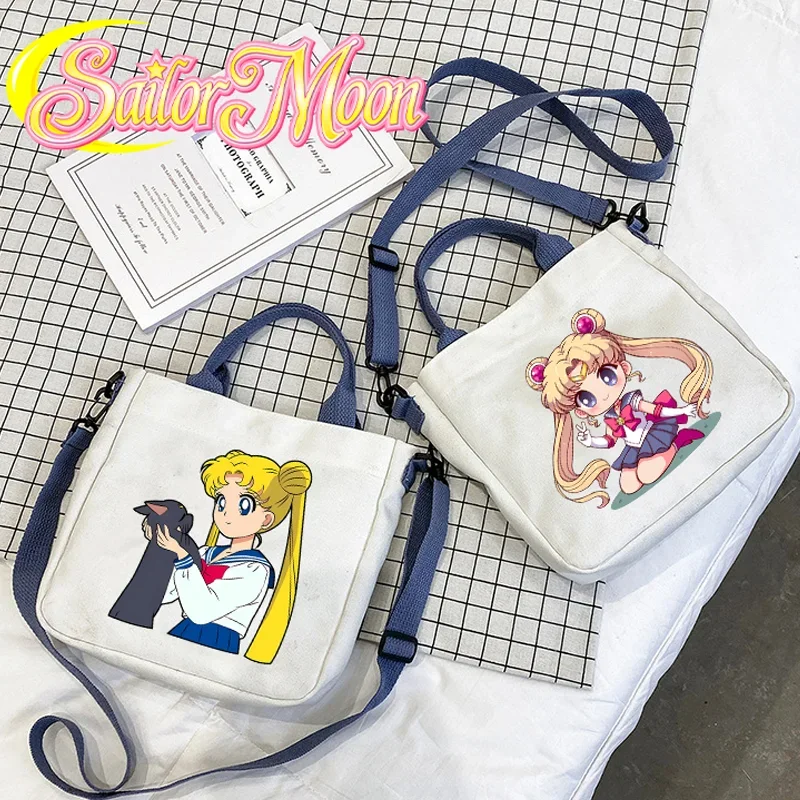 Sailor Moon Crossbody Bags Shoulder Bag Canvas Student Carrying Satchel Girl Cartoons Print Large Capacity Totes Package Gifts