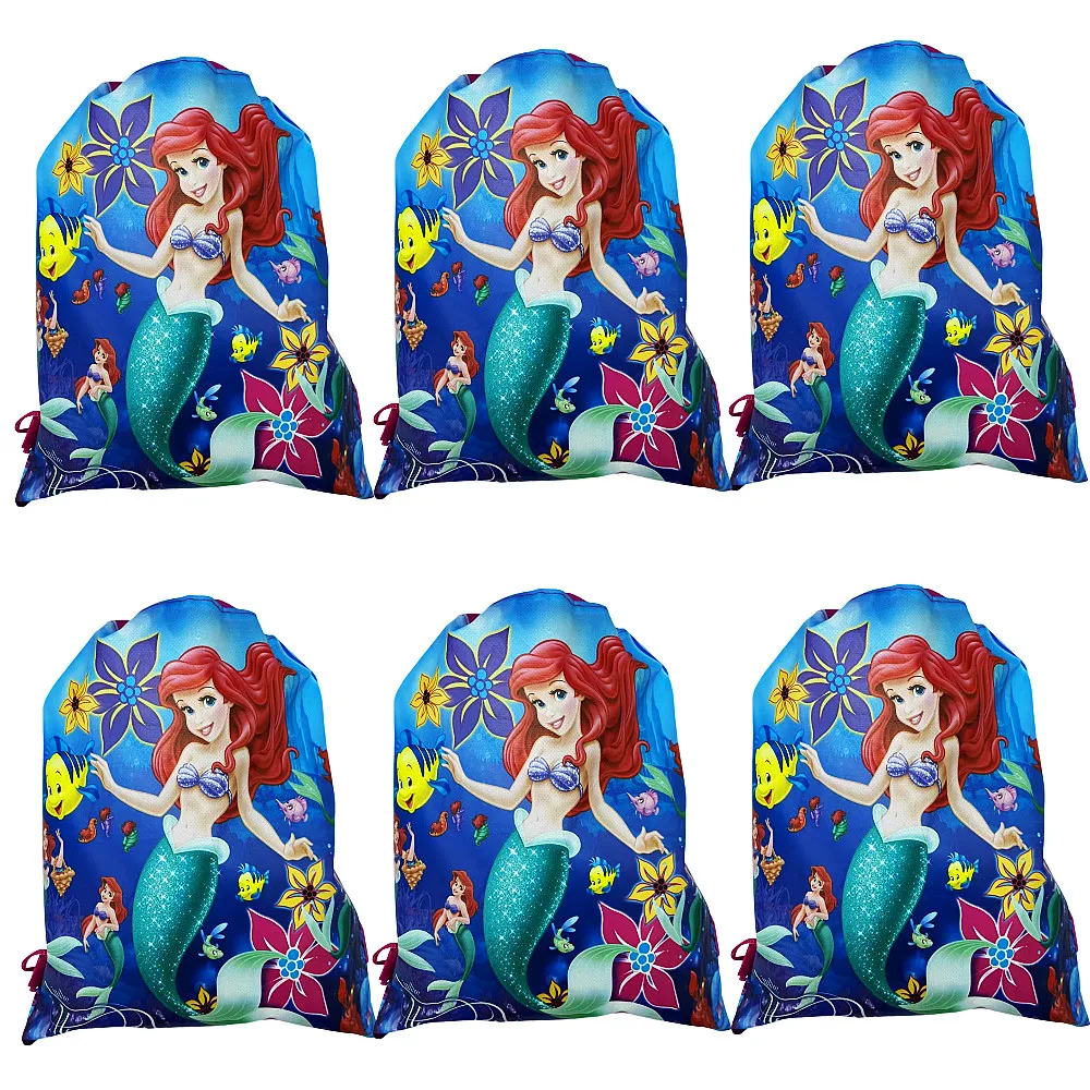 8/16/24/30/50PCS Cartoon Mermaid Theme Birthday Party Gifts Non-Woven Drawstring Bags Kids Girls Favor Swimming School Backpacks