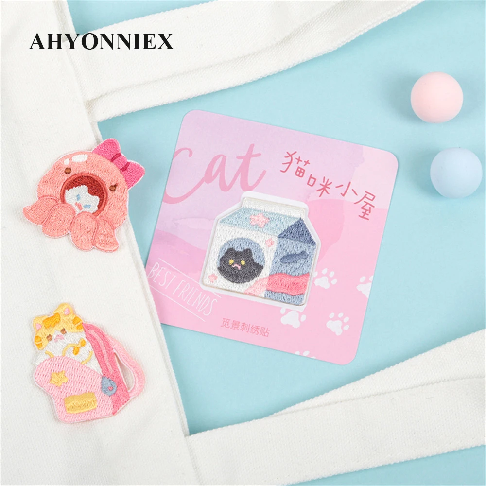 AHYONNIEX Naughty Cat Patches for Girls Bag Sticky Applique for Book Clothes Small Iron On Patch for Kids Clothes