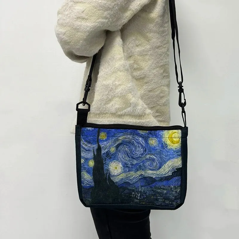 Art Print Van Gogh Oil Painting Shoulder Bag New Linen Bag Crossbody Bag Casual Foldable Girls Shoulder Bag